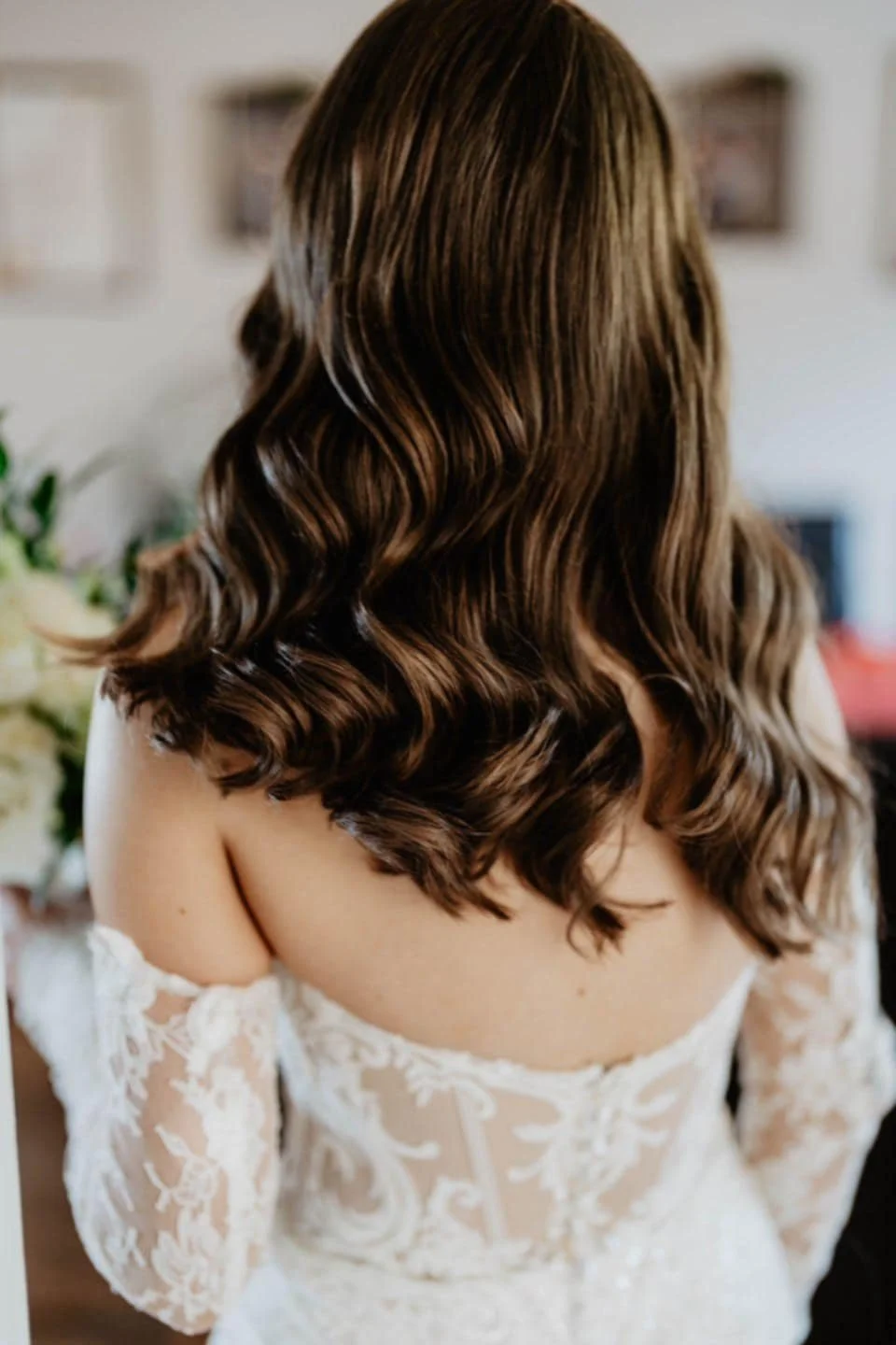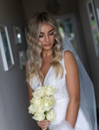 Bridal wavy long hair styled by Maire Johnson, Kerry based hair stylist.