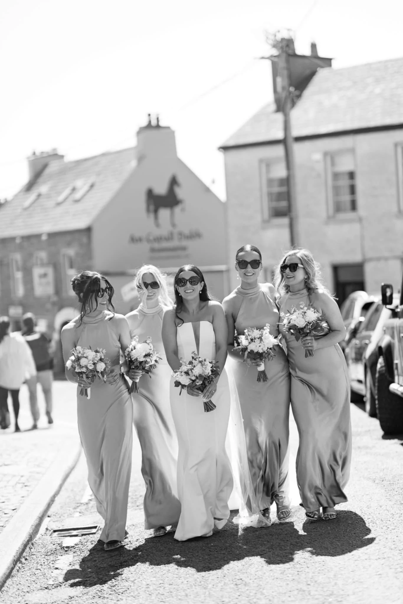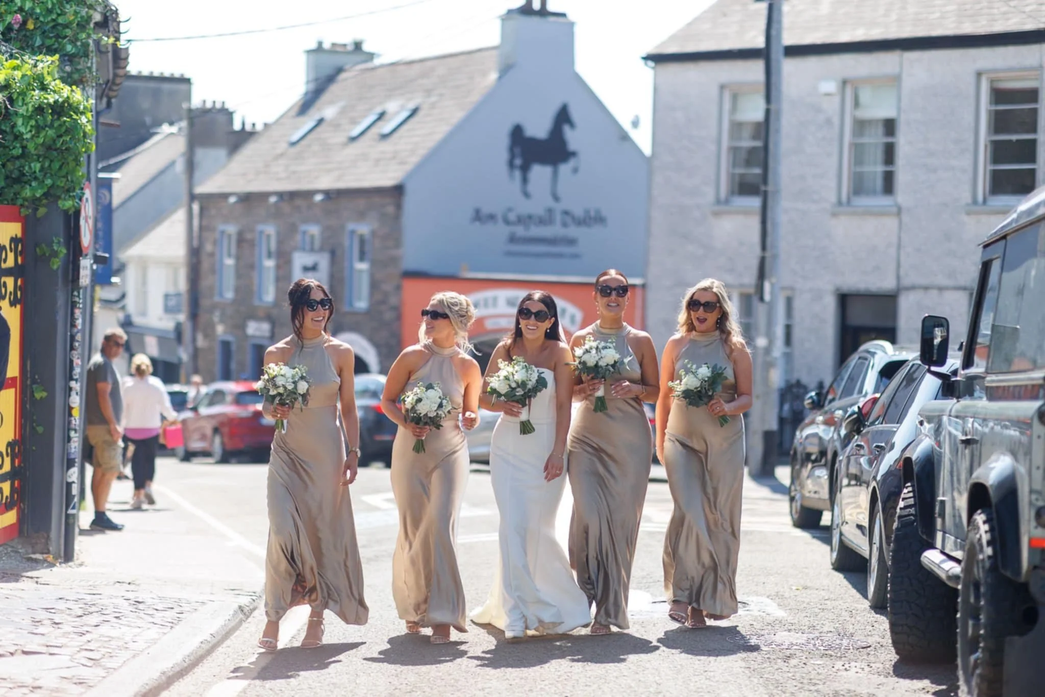Bride and bridesmaids with hair styles all created by Dingle-based hair stylist Maire Johnson.