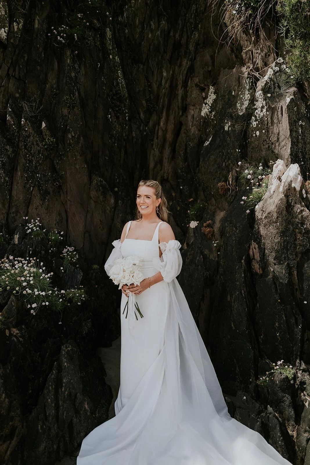 Romantic Dingle wedding hair styled by bridal expert Máire Johnson.