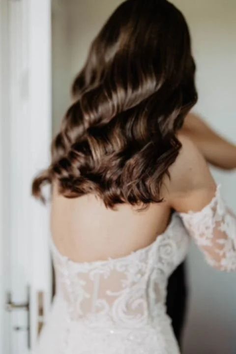 Elegant curls styled by Máire Johnson, a leading wedding hairstylist in Kerry. View fullsize